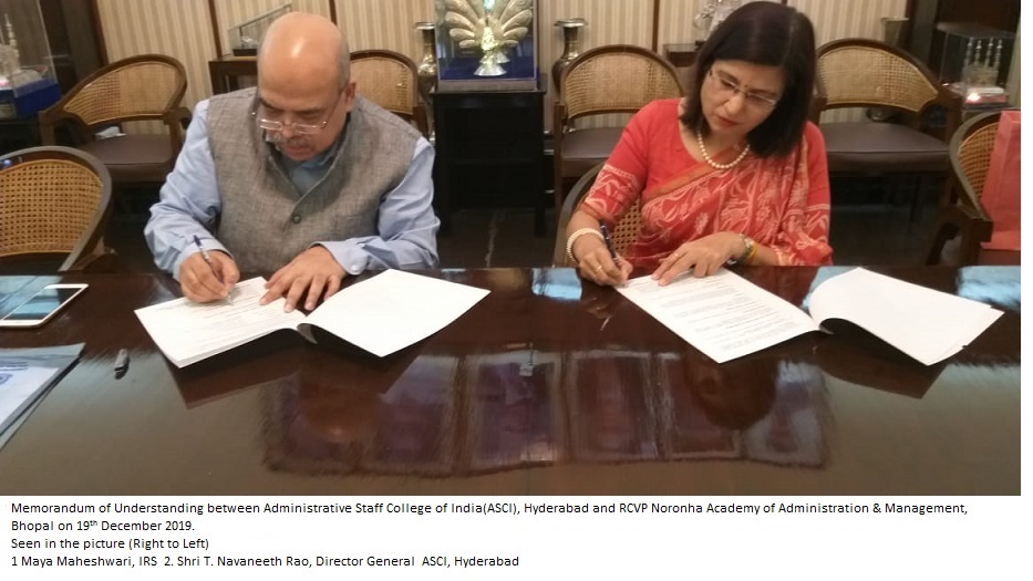 Memorandum of Understanding between Administrative Staff College of India(ASCI), Hyderabad and RCVP Noronha Academy of Administration(RCVPNAAM), Bhopal